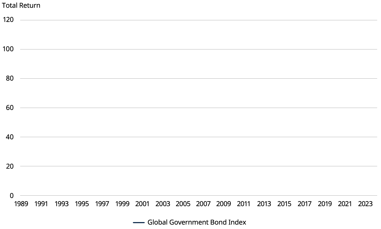 Source: Global Government Bond Index. Bloomberg, Robert Shiller, Schroders, LSEG Datastream. 31 December 1990 = 100. As at 11 July 2025. Past performance is not a guide to future results.